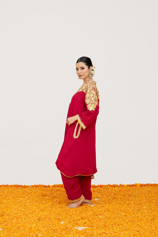 Cherry Red Crepe Tilla Set