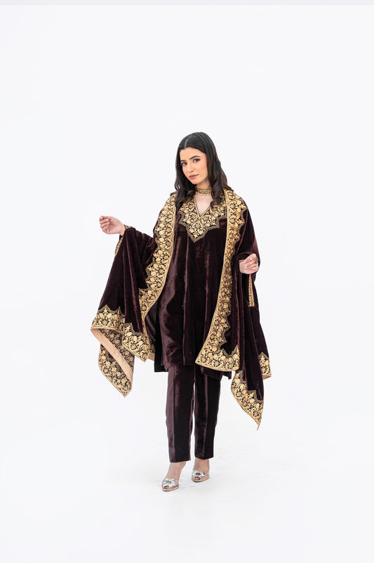 Brown Velvet Minar Cape Set