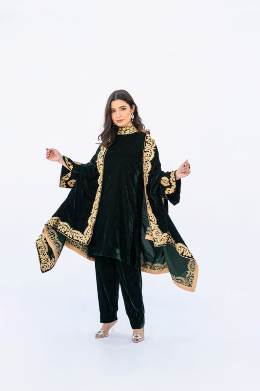 Cream Crepe Kashmiri Gala Tilla Phiran Suit