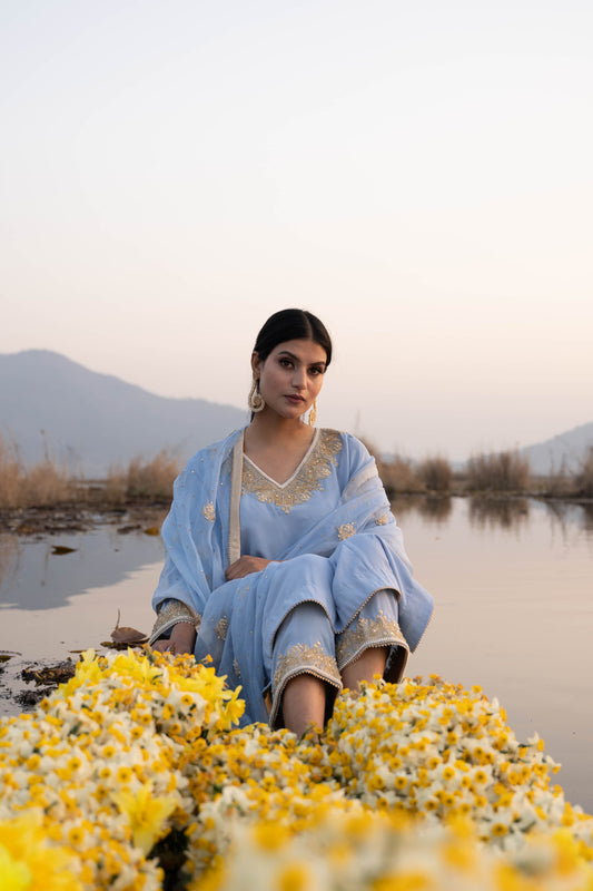 Carolina Blue Georgette Hand embroidered Tilla Suit