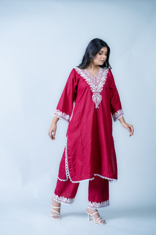 Black Cotton Suit with Kashmiri Gala Aari Embroidery