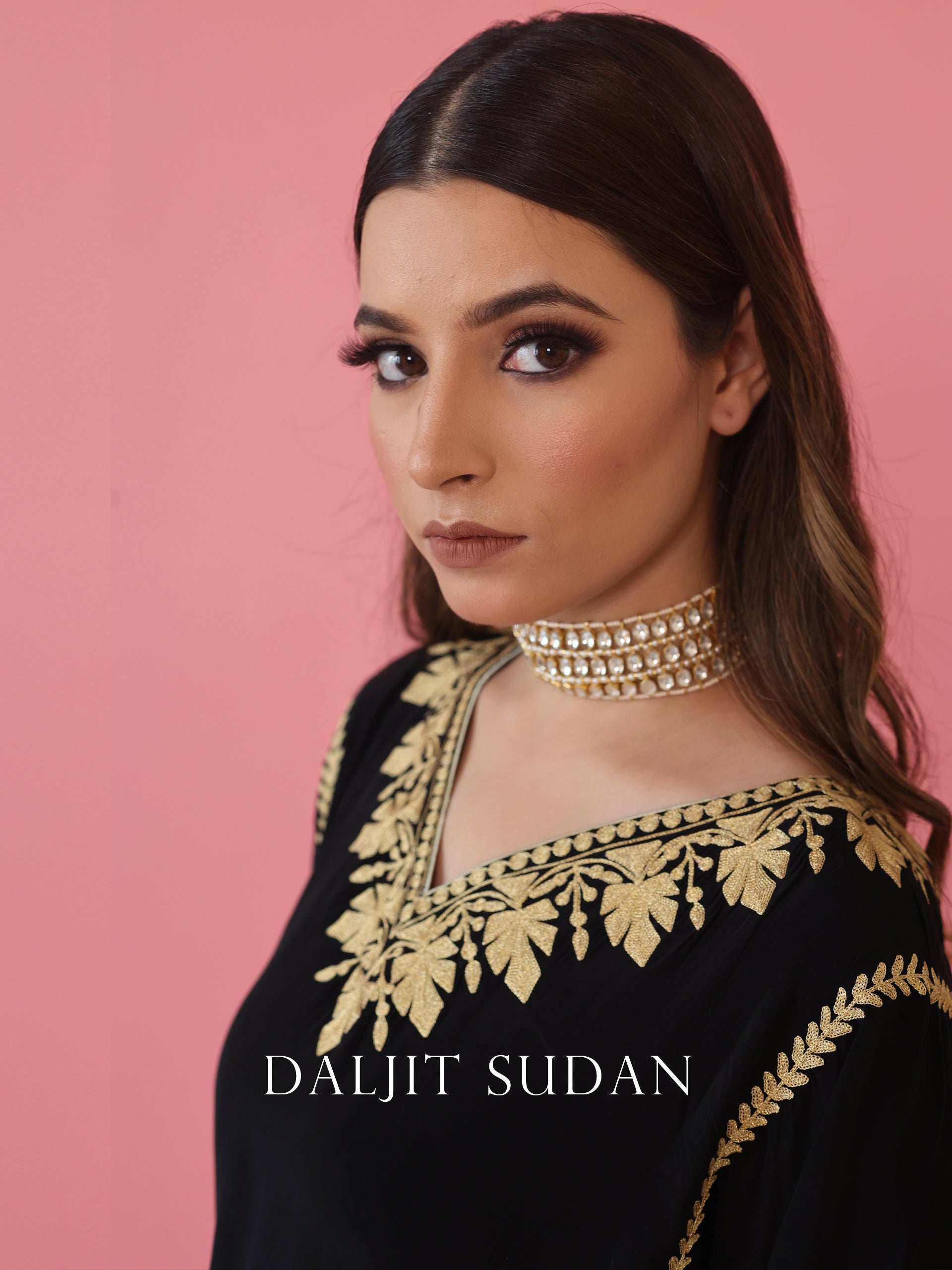 Black Crepe Phiran Set with Tilla Aari Embroidery