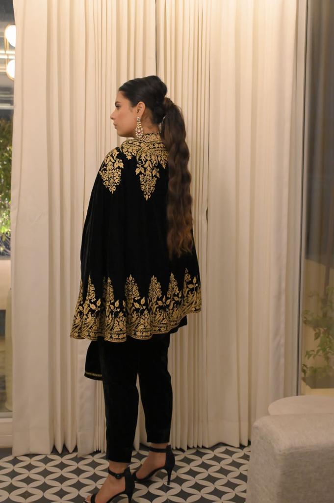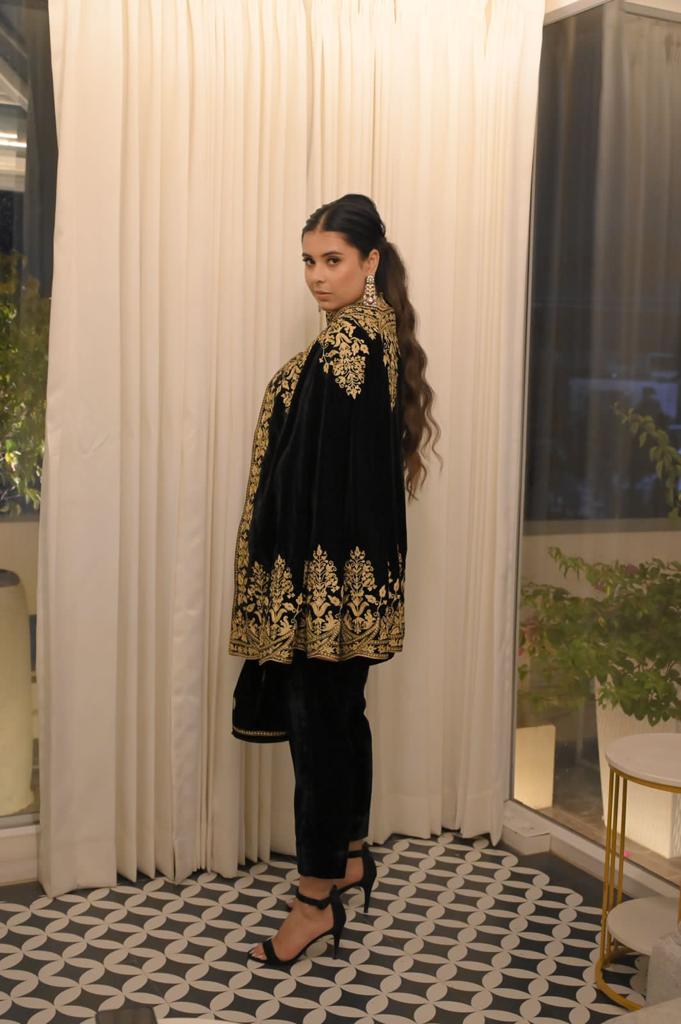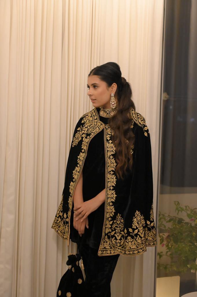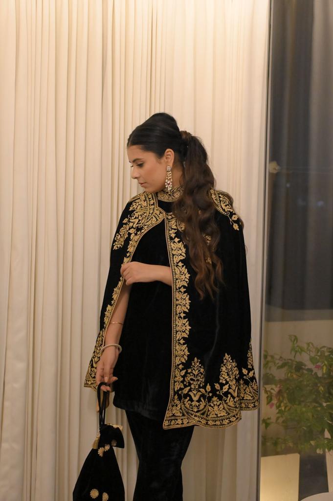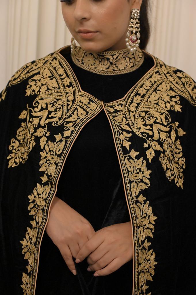 The Black velvet cape 3 pc set with Kashmiri aari embroidery.