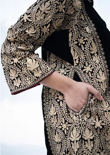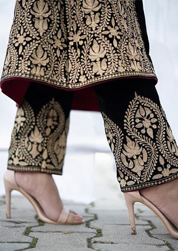 Black Velvet Phiran Set with Tilla Aari Embroidery