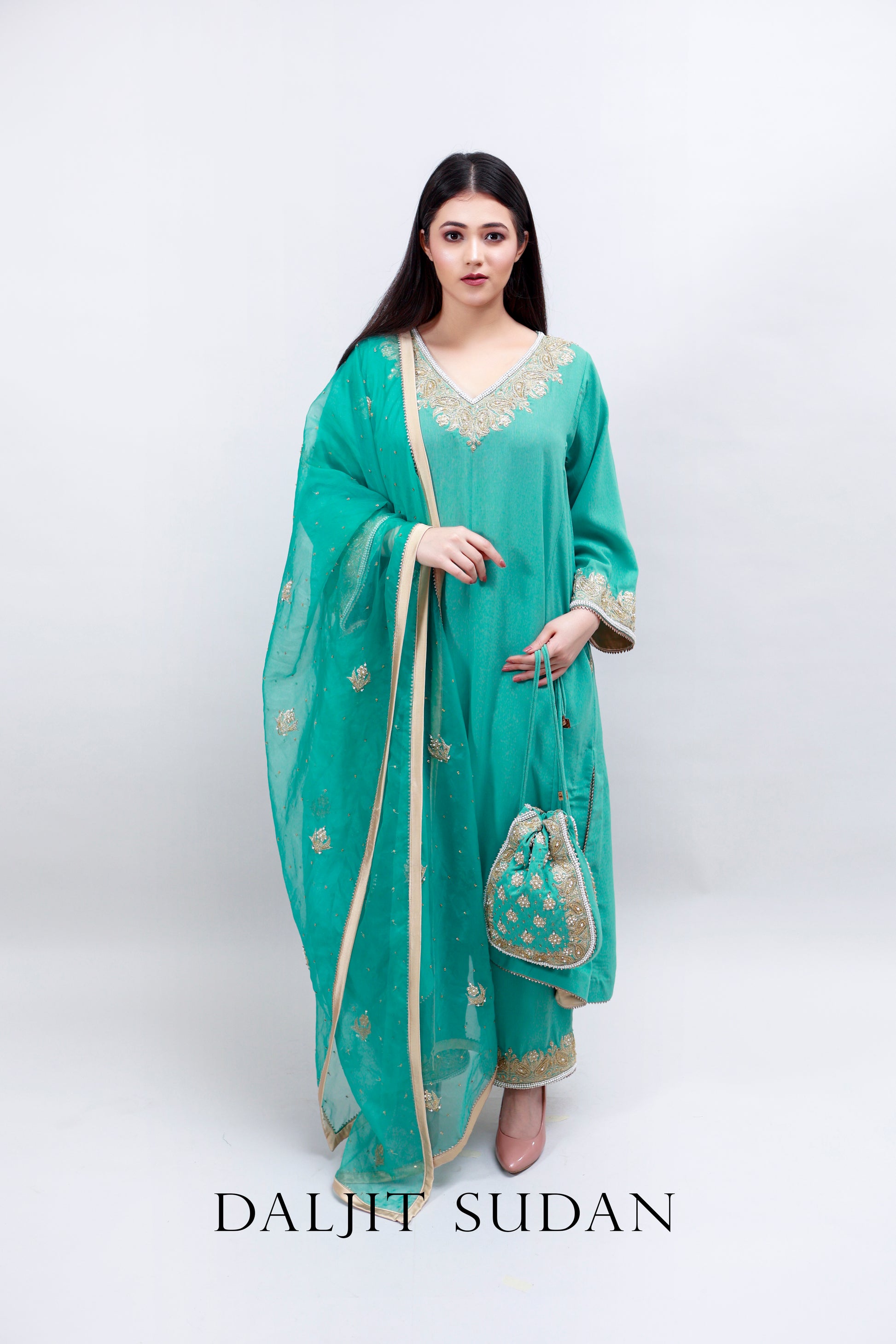 Embroidery: Tilla Machine Embroidery with Hand Pearl & zardozi work