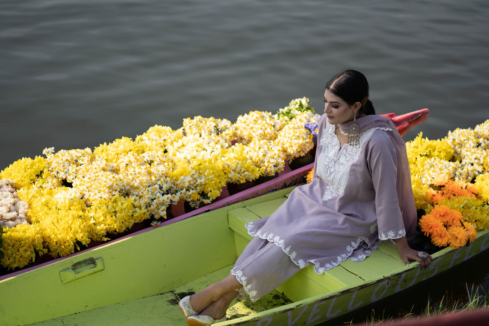 Lilac Cotton Phiran Suit with White Aari Embroidery