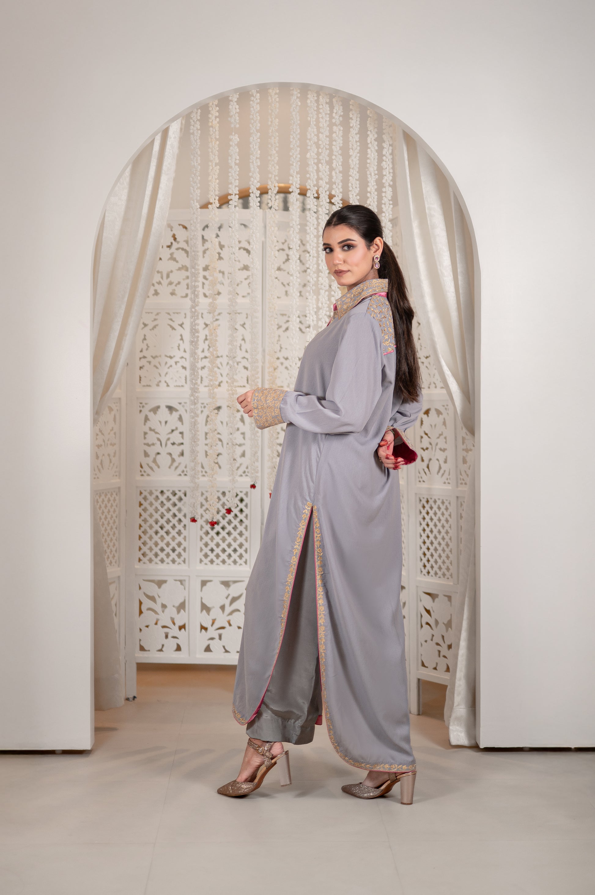 Grey Double Georgette Kurta Set