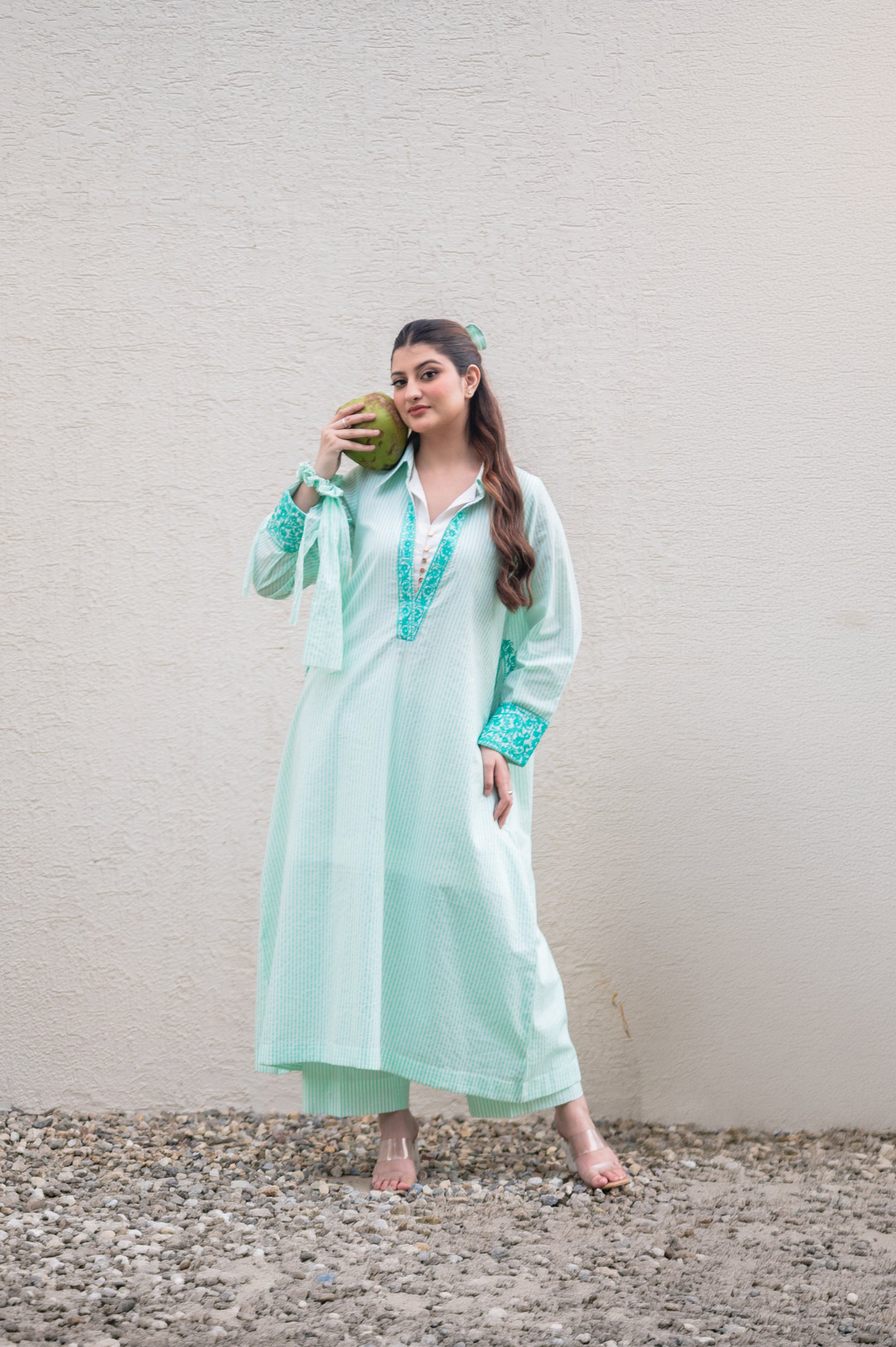Light Teal Stripes Kurta Set