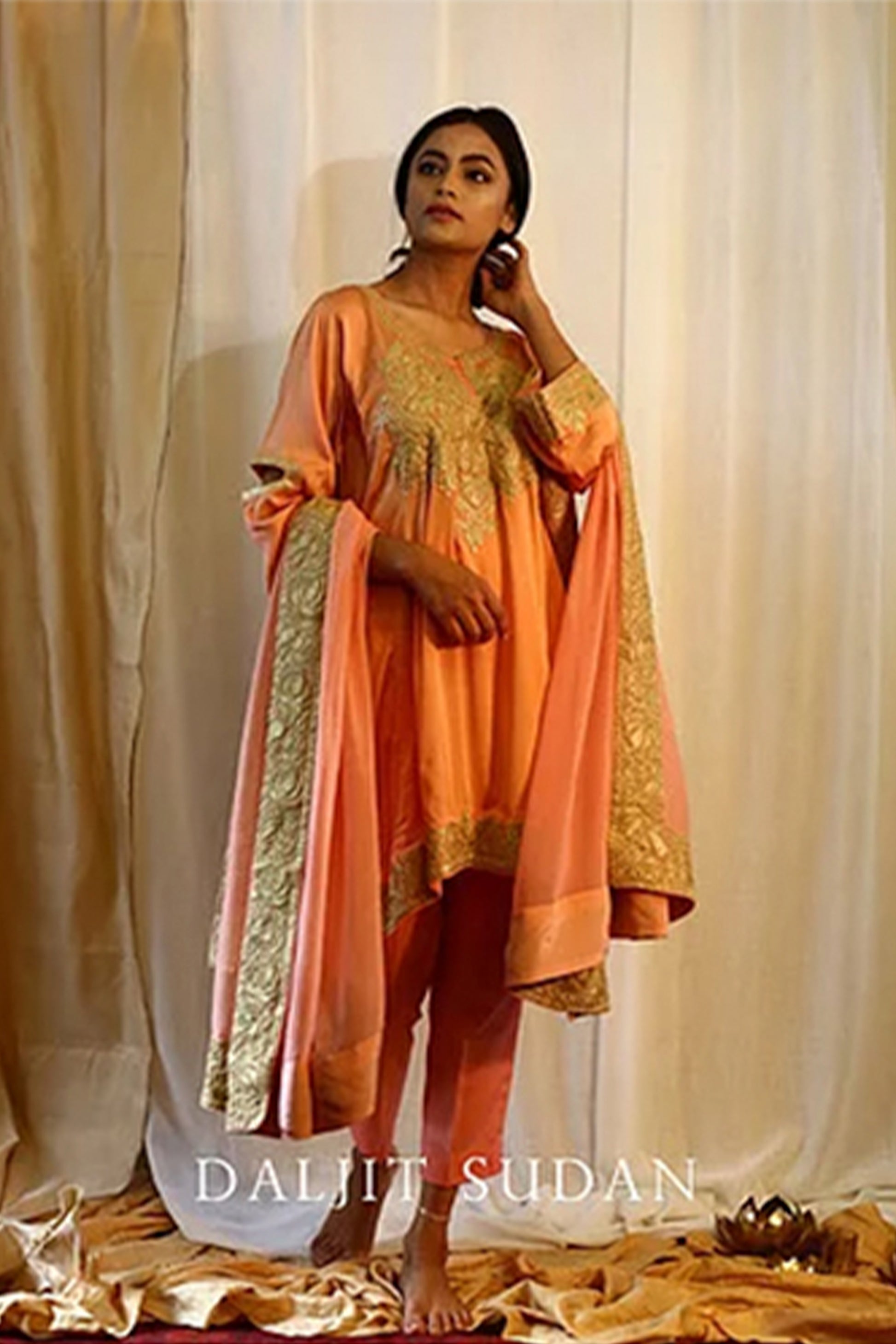 Peach Crepe Kashmiri Gala Tilla Phiran Suit II